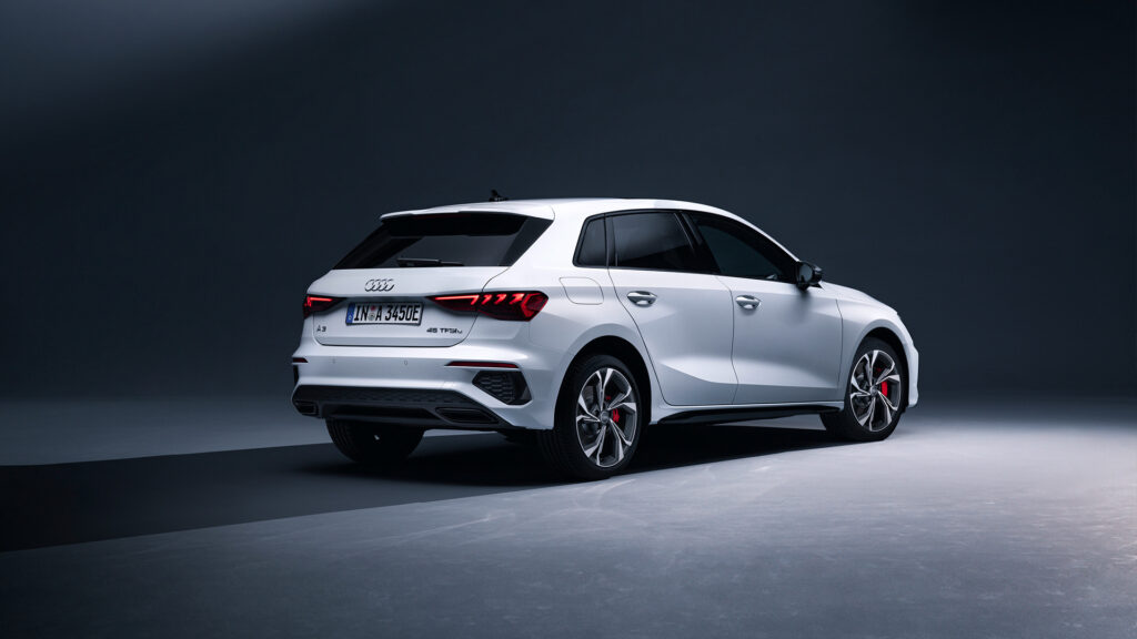Föregångaren lanserades redan 2014 och följs nu upp av A3 Sportback 45 TFSI e som är utrustad med en 1.4-liters TFSI-motor på 150 hk och 250 Nm i vridmoment samt en eldriven synkronmotor på 80 kW (109 hk) och 330 Nm i vridmoment. Den elektriska drivningen består av en kompakt enhet som förutom elmotorn även inrymmer en 6-stegad S tronic-växellåda. Batteriet på 13 kWh består av 96 prismatiska celler som kan laddas med maximalt 2.9 kW, vilket gör att det kan återladdas på ca fem timmar från ett vanligt hushållsuttag.