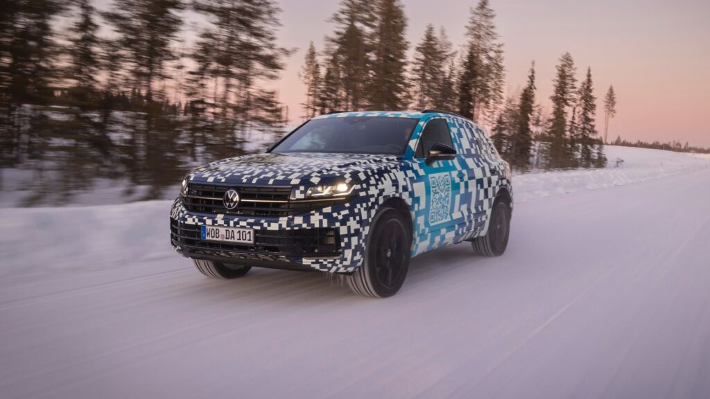 Nya Touareg i kamouflerad version håller på att slutföra sina sista testmil vid norra polcirkeln och även om designändringarna fortfarande är dolda under en överdimensionerad QR-kod, ger bilderna av denna förklädda prototypen redan en konkret förhandsvisning av de första tekniska detaljerna.