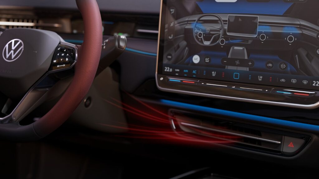 Den nya klimatanläggningen med intelligenta luftventiler erbjuder ett antal funktioner. ID.7 kan till exempel känna av när föraren närmar sig med nyckeln och börjar kyla eller värma kupén redan innan passagerarna sätter sig i bilen. Systemet kan också anpassa sig efter solens position. Den nya smarta och automatiska klimatanläggningen reagerar också på röstkommandon och tar hänsyn till individuella användarpreferenser. Resultatet är en ökad komfort som sätter en ny standard i klassen.